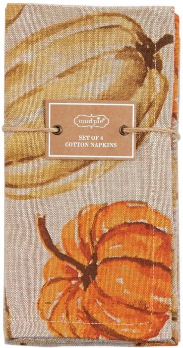 Be ready for your holiday guests with this set of four chambray napkins printed with watercolor pumpkin artwork. Cloth napkins are ecologically friendly!