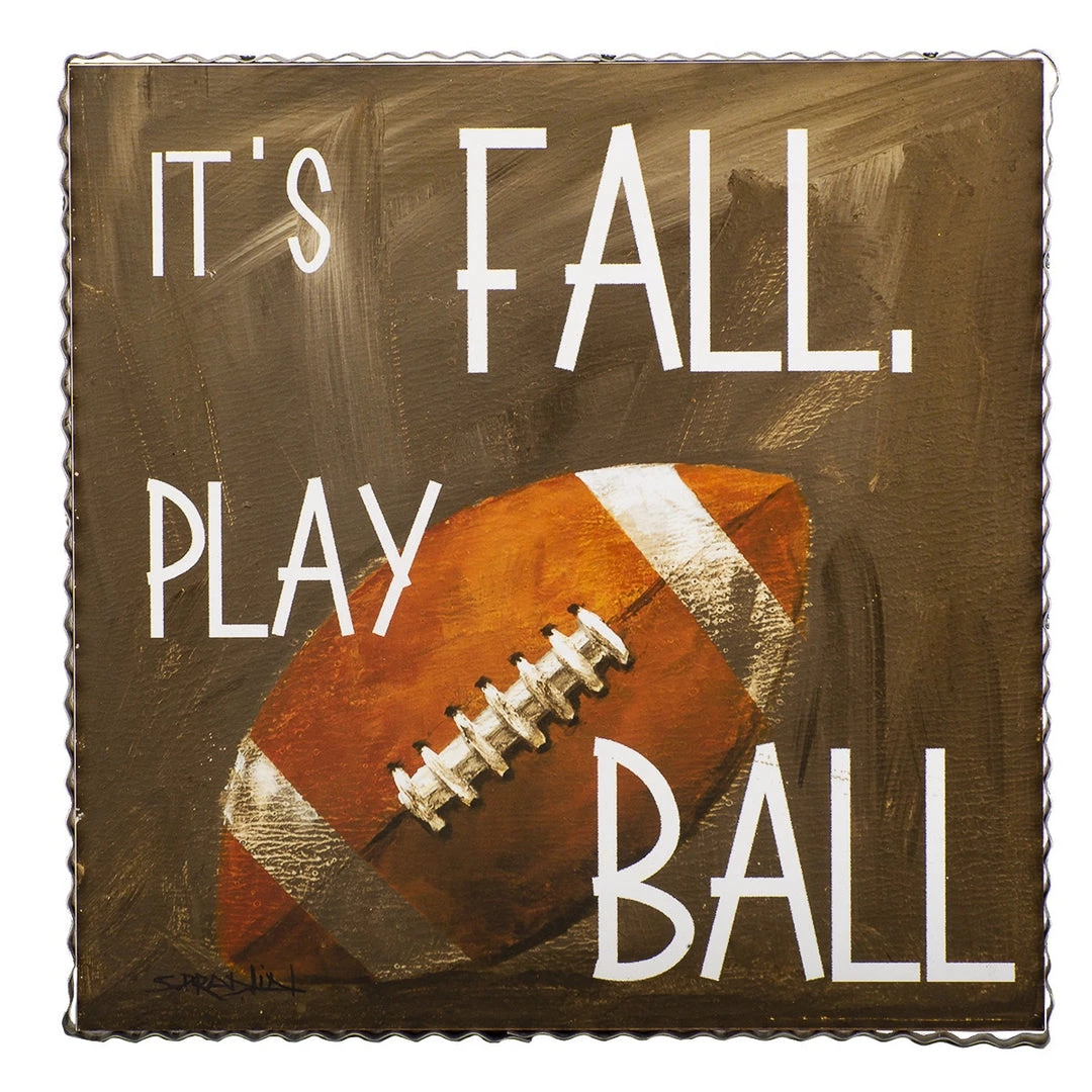 Fall decorating includes nods to fall sports–like FOOTBALL! Just prep the snacks and you’ll be all set for your game day gathering! This print is framed in ripple tin.