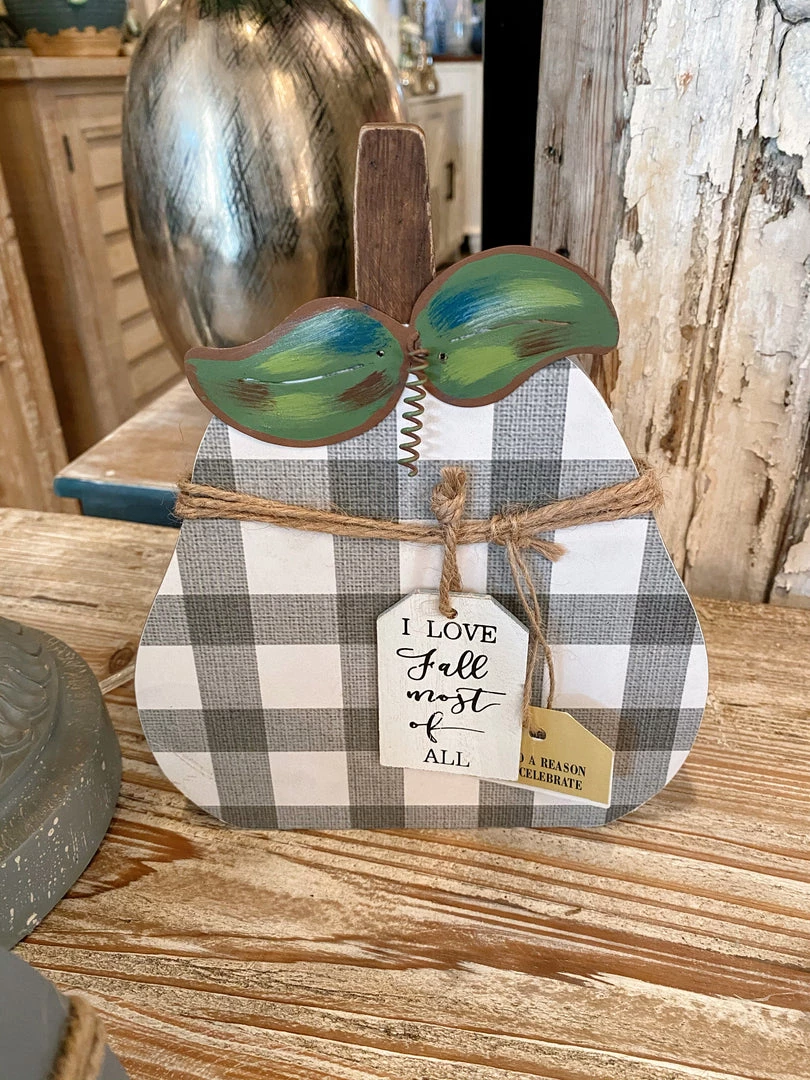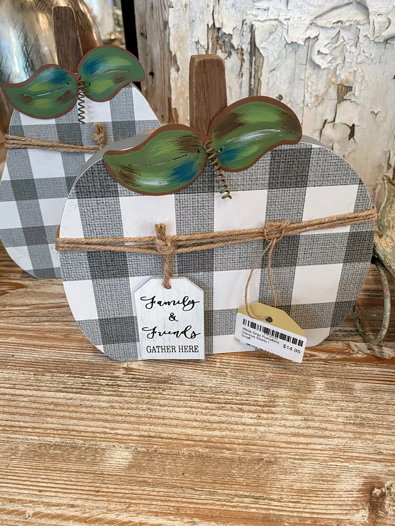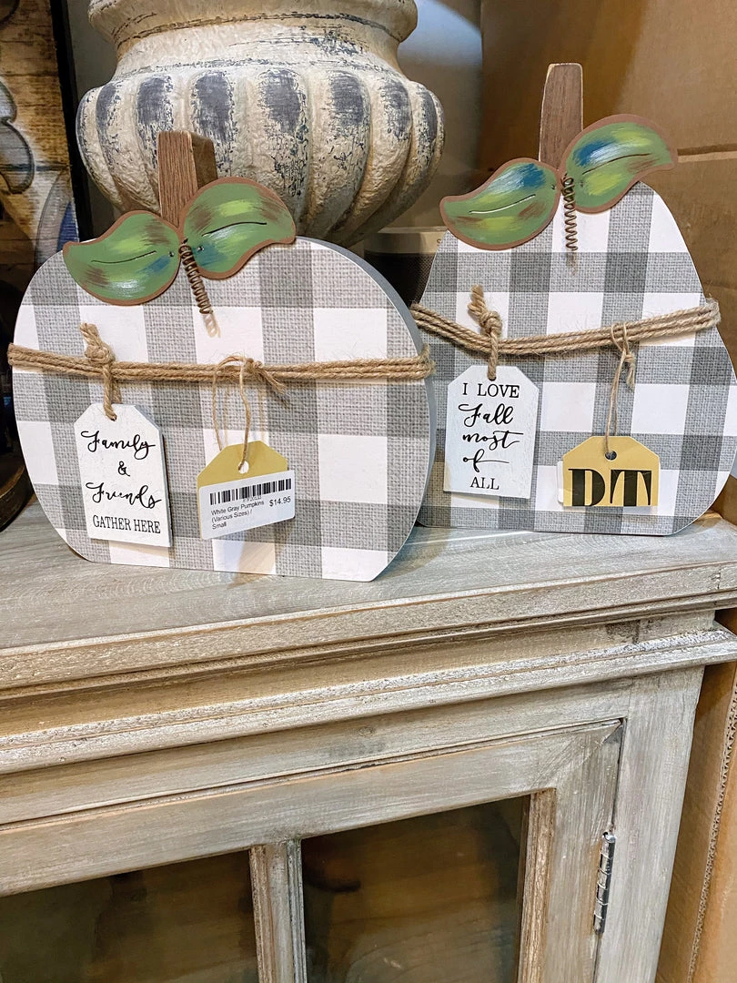 Adorable gray and white plaid pumpkins!