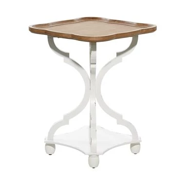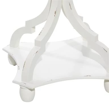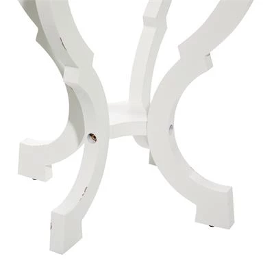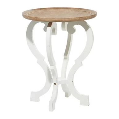 Sweet accent table with stylish white carved pedestal and scalloped wood tray top. Adorable!