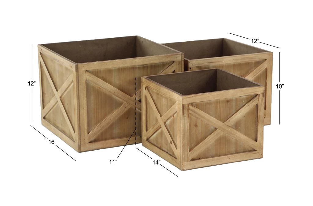 Bare wood-finished crate planters for indoor planting or vegetable gardening
