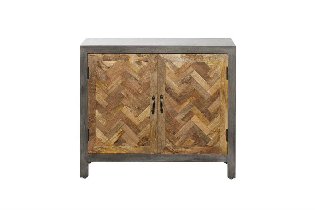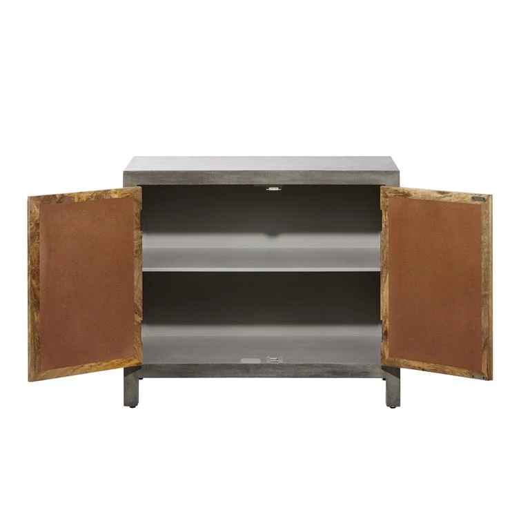 - Wood is carved and given a soft whitewashed finish to form romantic farmhouse console table design