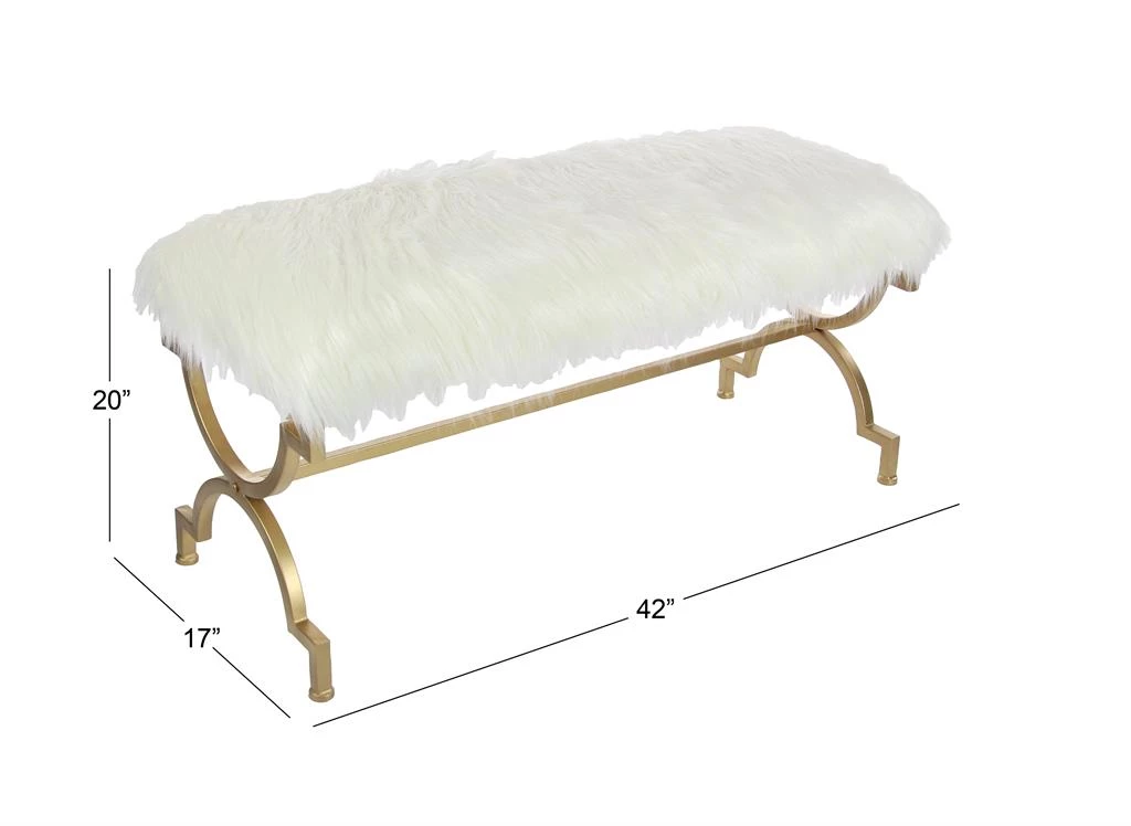 Pretty details like arabesque gold tone legs make our faux fur bench an ideal option for end of bed, foyer seat, or even the piano.
