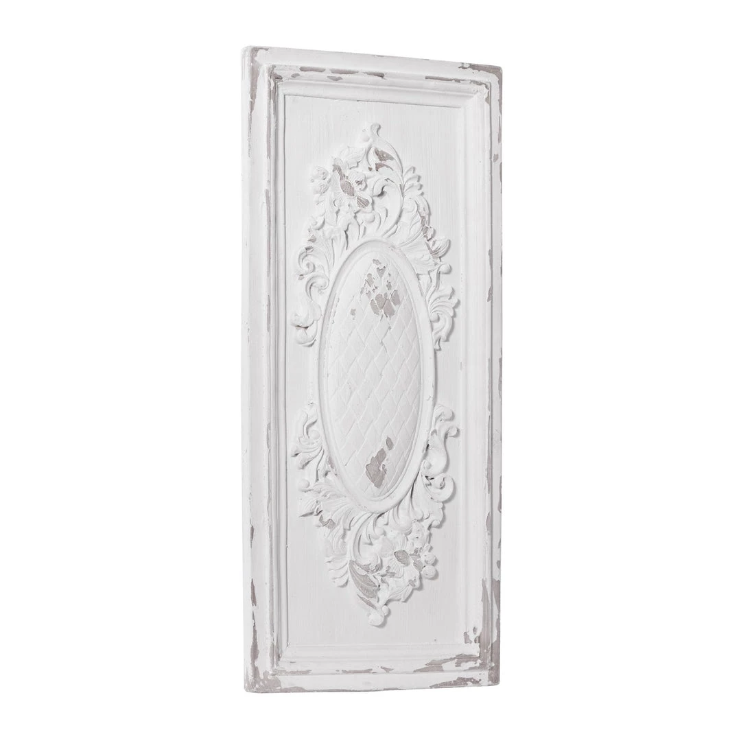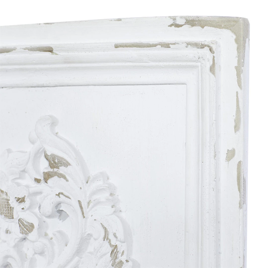 This dreamy whitewashed carved art panel will infuse your home with a sophisticated style.
