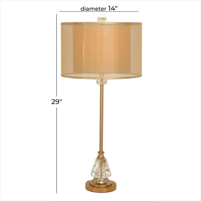 Five stars! We’re obsessed with this glam lamp that features a gold and acrylic crystal base and a stunning copper mesh drum shade! Its slim profile makes it a winning choice for buffet, console, dresser or petite bedside table. It will surely elevate your transitional to modern interiors. Cord length 64 inches. Nonslip, non-marring base.Â