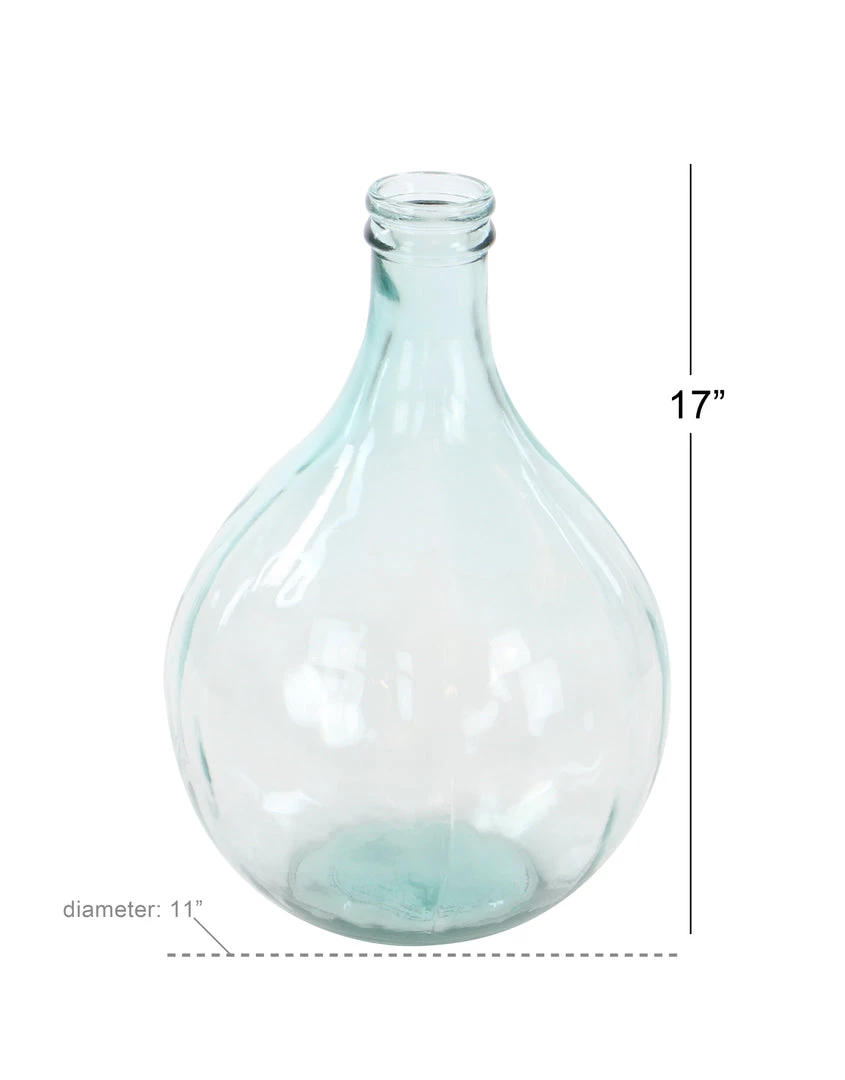 Wonderful teardrop artisanal blue glass bottle to display alone as a decorative piece–or to add palm leaf or your favorite florals. A great laid back coastal vibe. Just right for table top, hearth or console. Great in a modern or farmhouse inspired home.Â