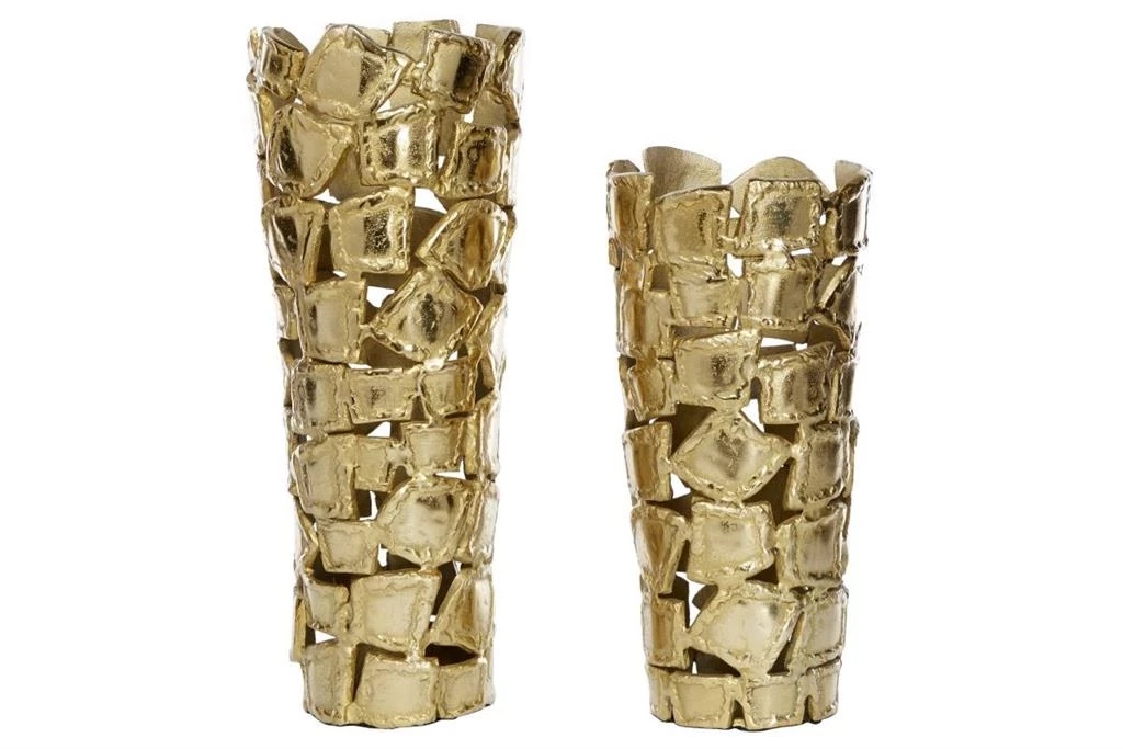 Unique welded-squares design of this striking gold toned aluminum accent piece perfectly suits your contemporary interiors.Â