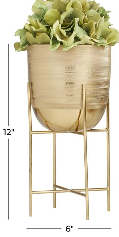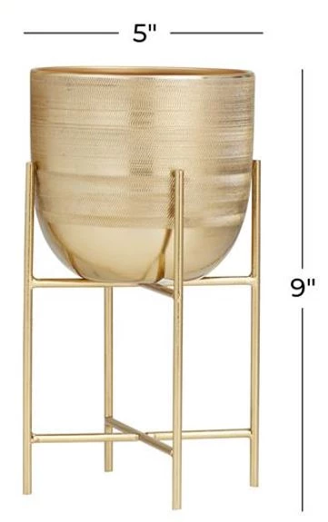 Bring a touch of nature indoors with these contemporary pots. Your plants will get the star treatment in our modern gold tone elevated planters! We’re loving the modern style and mix of shiny gold and brushed texture. Available in two sizes–for extra style points, display as a pair. Indoor use. Please note: for live plants, provide drainage with an inner pot. Planters do not have drainage holes, are not watertight. Made in India.
