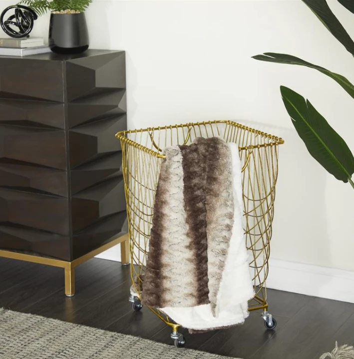 This storage cart is a refined and stunning statement piece that gives function and unique display in any space with its deep basket style cart.