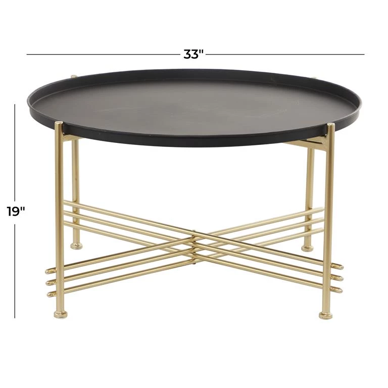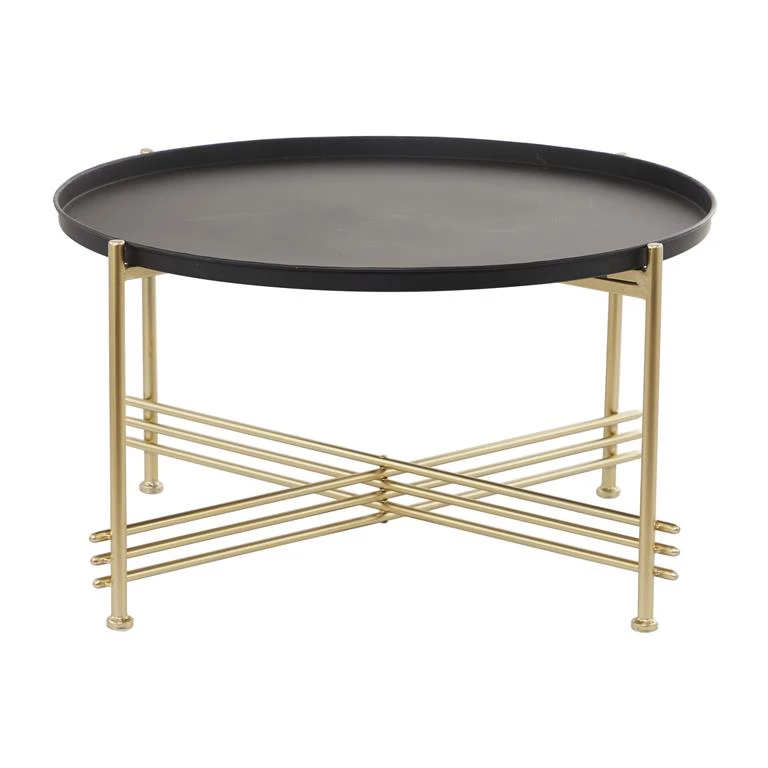 - Features a round surface with “X” shaped crisscross support beams at the legs