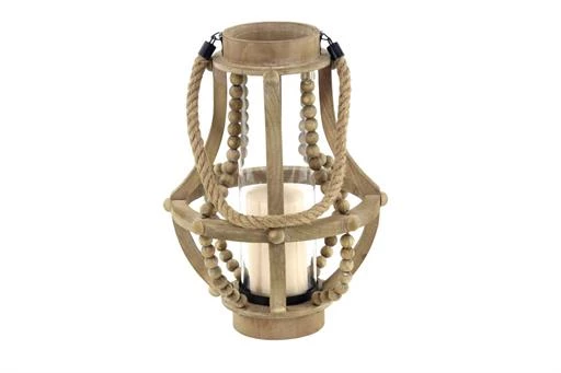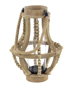 Gorgeous wood lantern features beaded trim and glass hurricane glass for your pillar candle. Perfect for your mantel or hearth, entry or dining table, or porch or covered deck.