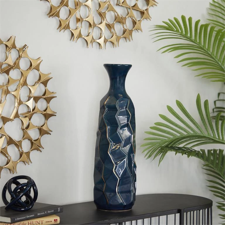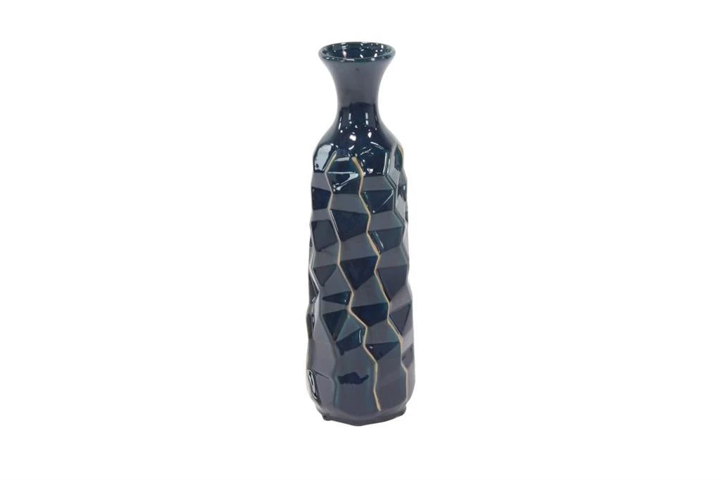 This stunning vase features a funnel-shaped mouth, a tall cylinder body and a modern edgy design