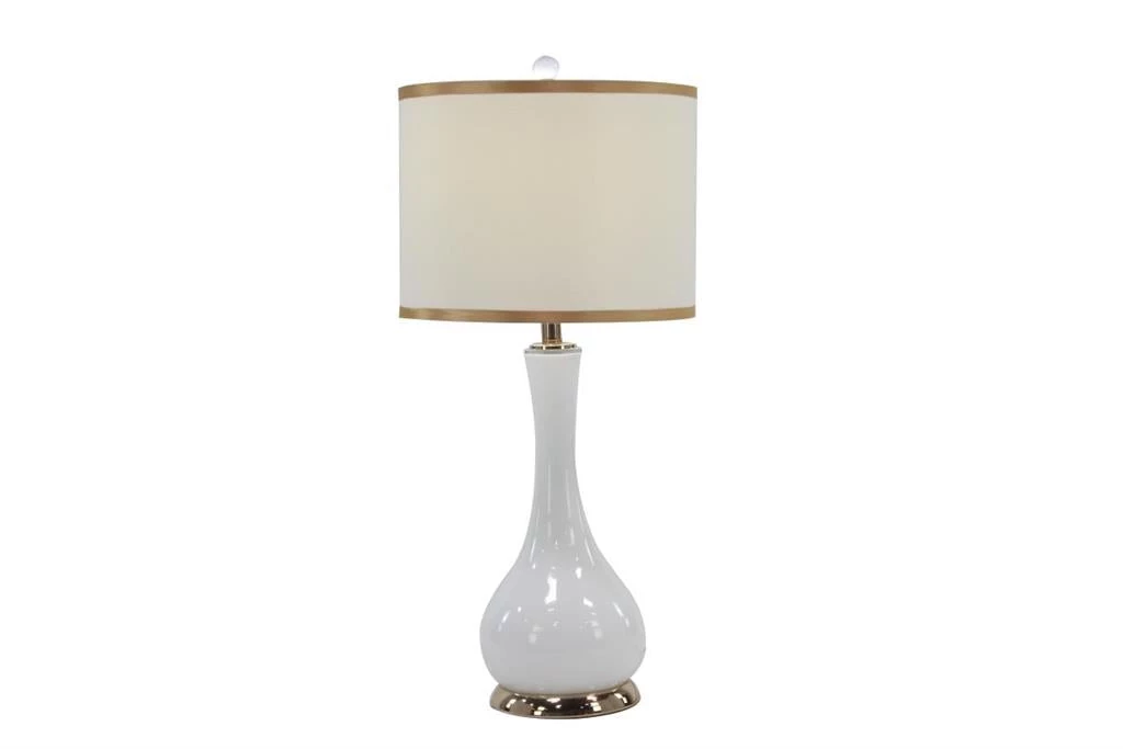 Our chic white table lamp with gold base will make a fashion statement in bedroom, family or living room. Or create a striking welcome with a pair on your entry console. Complemented by a wonderful gold trimmed white drum shade.