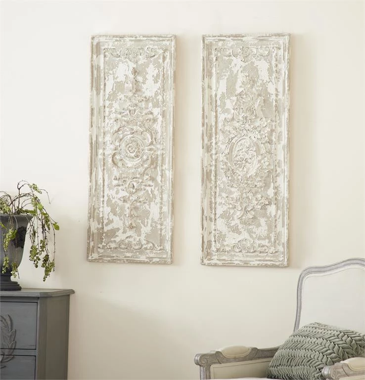 Dreamy whitewashed carved art panels will infuse your home with a sophisticated style (set of 2).