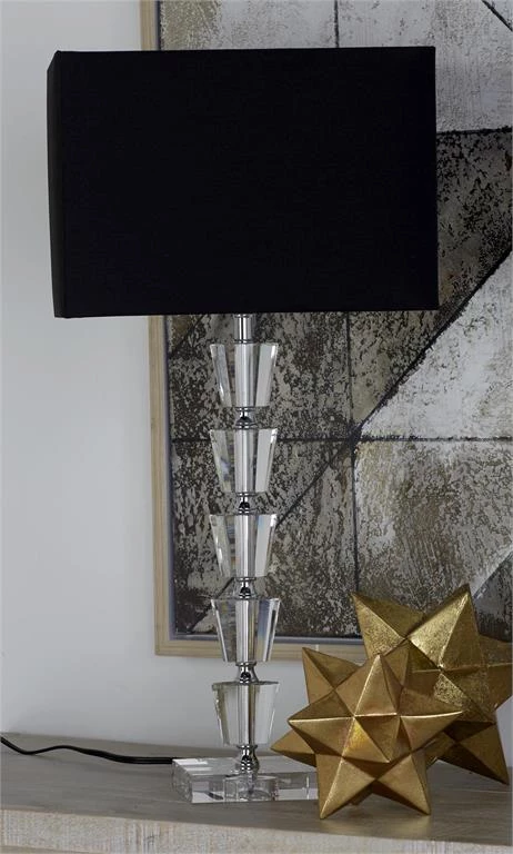 Bedside, chairside, on your console or buffet, you’ll want a pair of these! Make a bold statement with this unique acrylic table lamp topped with a smart looking contemporary black rectangular 13″ x 9″ shade. Cord length is 64 inches. Non slip, non-marring base.