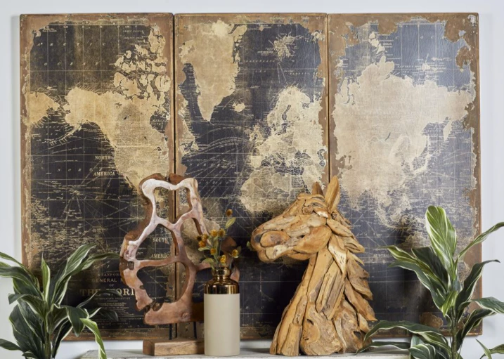 With the old-world looks with modern appeal, our oversize triptych of map panels will steal the show at home or in your office.Â