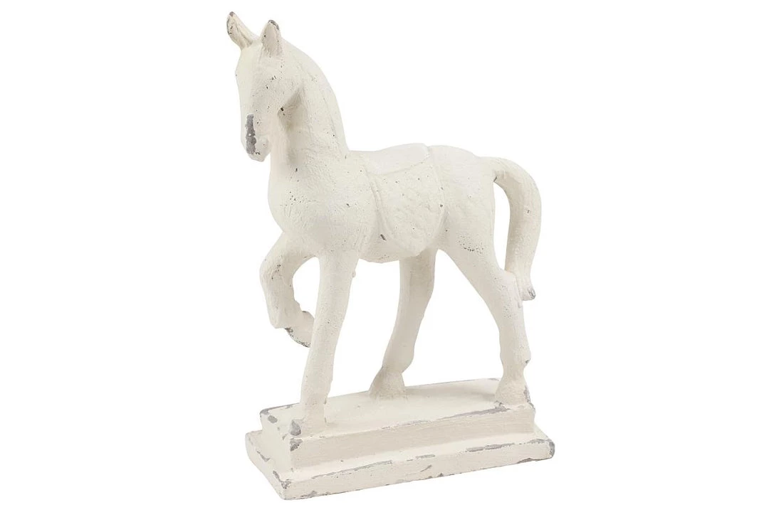 The neutral hue of this textural white shelf decor works with any color palette while bringing equestrian sophistication to your vintage-inspired home. The vintage design of this home décor brings a sense of the past to your home.