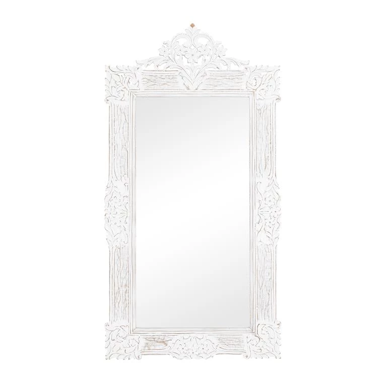 French country strikes a balance between rustic and elegant. Add high style to your home with this large, ornate white decorative floor mirror. Perfect for any room!