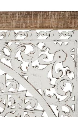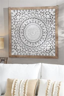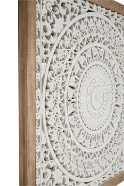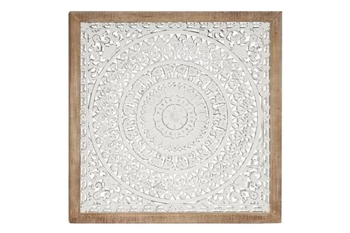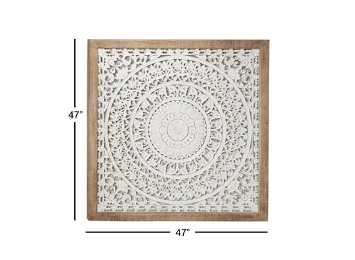 Transform a lackluster space with our square intricately carved wooden wall art. It features a light whitewash finish, and will provide a lovely welcome in your home. Â