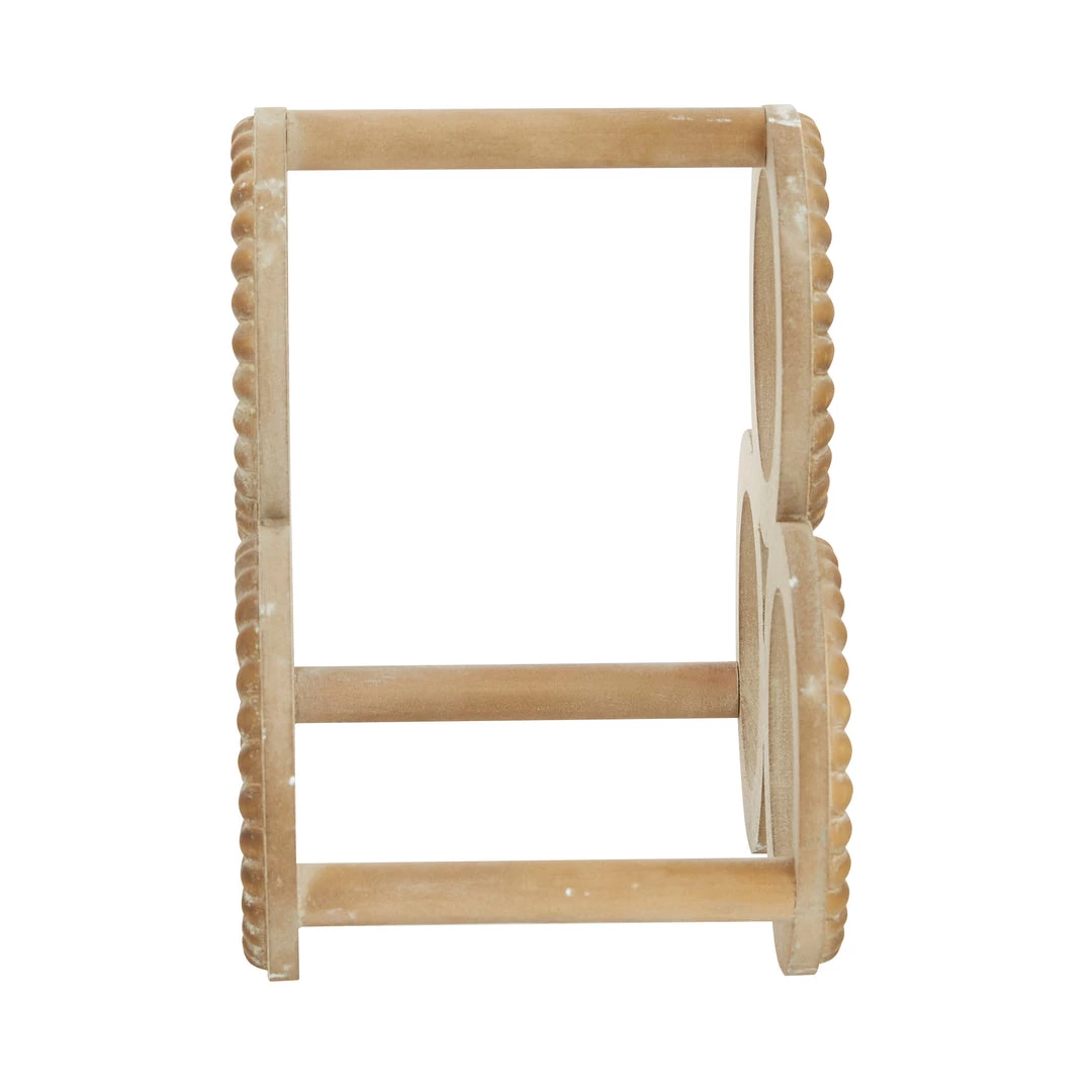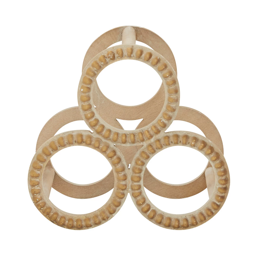 Store and serve your wine in style with our wooden beaded three-bottle countertop wine rack.